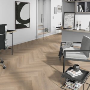 De Floors PVC Plak Visgraat 037 is een lichtbruine PVC visgraatvloer met een natuurgetrouwe houtlook. Dankzij de planken van 76,5 x 15,3 cm ontstaat een stijlvol, klassiek visgraatpatroon dat past in zowel moderne als traditionele interieurs.